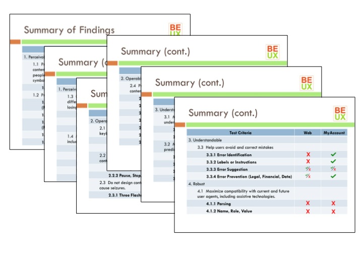 Balanced Experience can help you dig in and understand more precisely how your web site or app stacks up against the established accessibility standards defined by the Web Accessibility Initiative, a part of the Worldwide Web Consortium (W3C). These are the standards that are typically used to establish the degree to which any site or app is considered accessible.